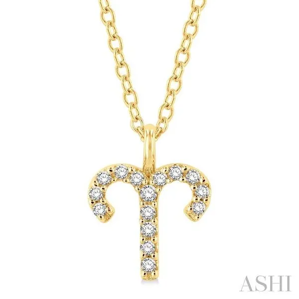 1/10 Ctw Aries Round Cut Diamond Zodiac Pendant With Chain in 10K Yellow Gold Image 2 Adler's Diamonds Saint Louis, MO