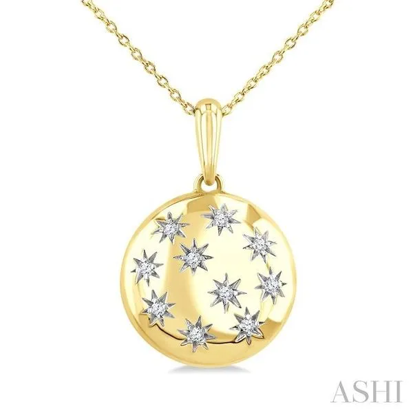 1/10 Ctw Bold Star Engraved Puffed Round Cut Diamond Pendant With Chain in Yellow Gold Vermeil Image 3 Adler's Diamonds Saint Louis, MO