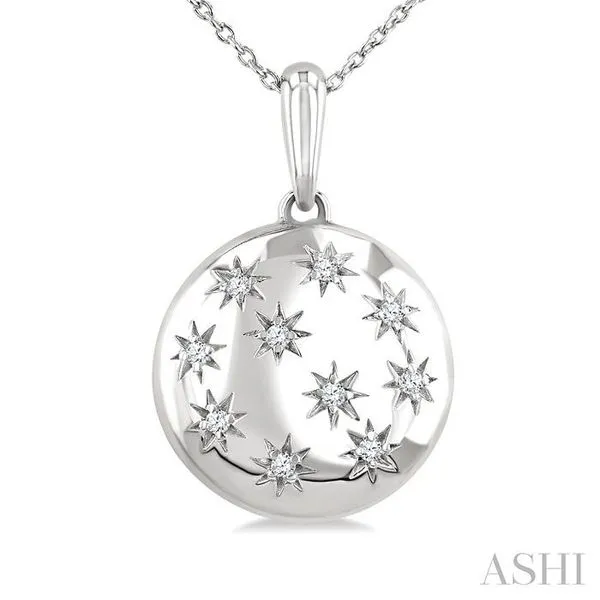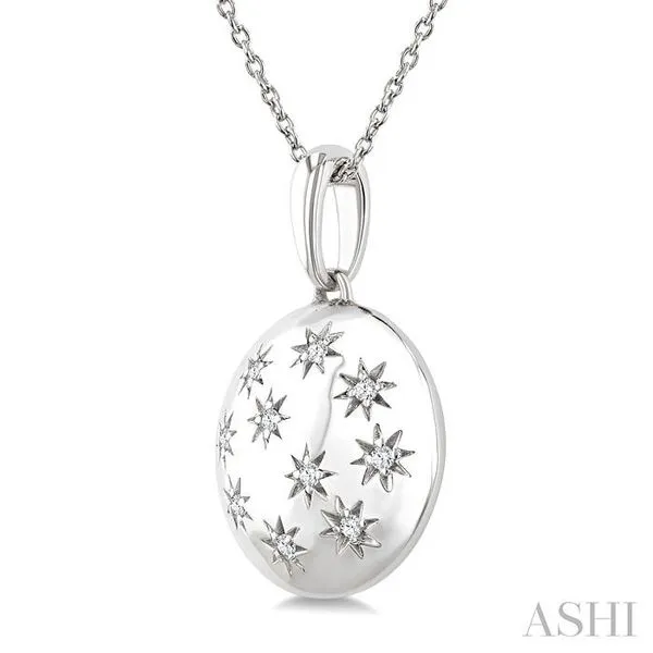 1/10 Ctw Bold Star Engraved Puffed Round Round Cut Diamond Pendant With Chain in Sterling Silver Image 3 Adler's Diamonds Saint Louis, MO
