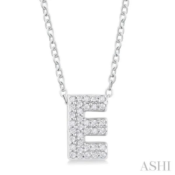 1/10 Ctw Bubble Accent Initial 'E' Round Cut Diamond Fashion Pendant With Chain in 10K White Gold Image 4 Adler's Diamonds Saint Louis, MO