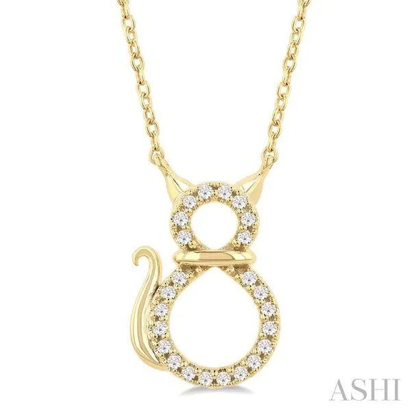1/10 Ctw Cat Shape Petite Round Cut Diamond Fashion Pendant With Chain in 10K Yellow Gold Adler's Diamonds Saint Louis, MO