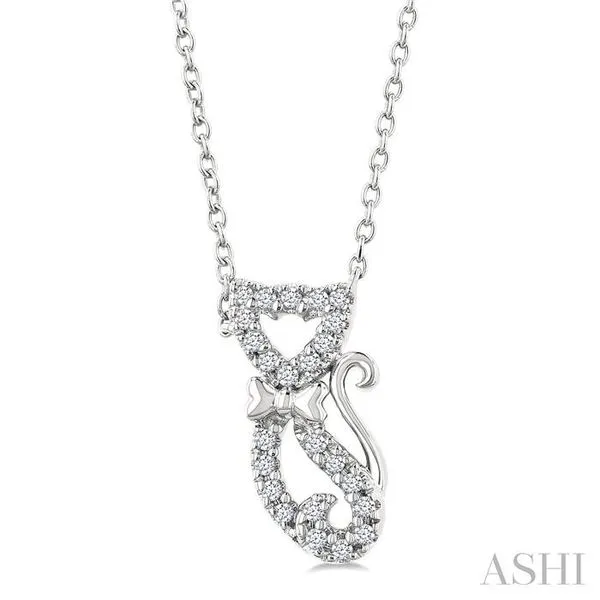 1/10 Ctw Cat Shape Petite Single Cut Diamond Fashion Pendant With Chain in 10K White Gold Adler's Diamonds Saint Louis, MO