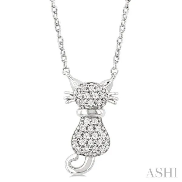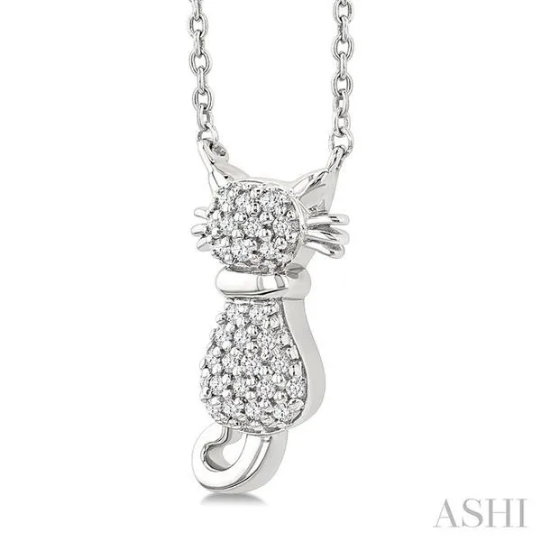 1/10 Ctw Cat Shape Petite Single Cut Diamond Fashion Pendant With Chain in 10K White Gold Adler's Diamonds Saint Louis, MO