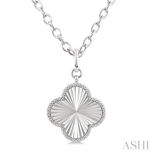 1/10 Ctw Clover Fluted Medallion Round Cut Diamond Pendant With Chain in Sterling Silver Image 3 Adler's Diamonds Saint Louis, MO