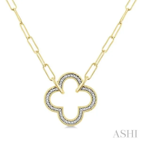 1/10 Ctw Clover Frame Round Cut Diamond Fashion Pendant With Paperclip Chain in Yellow Gold Vermeil Adler's Diamonds Saint Louis, MO