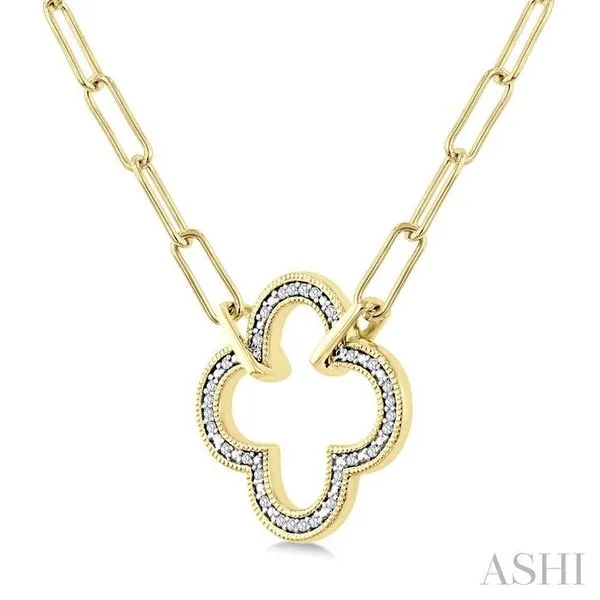 1/10 Ctw Clover Frame Round Cut Diamond Fashion Pendant With Paperclip Chain in Yellow Gold Vermeil Image 2 Adler's Diamonds Saint Louis, MO