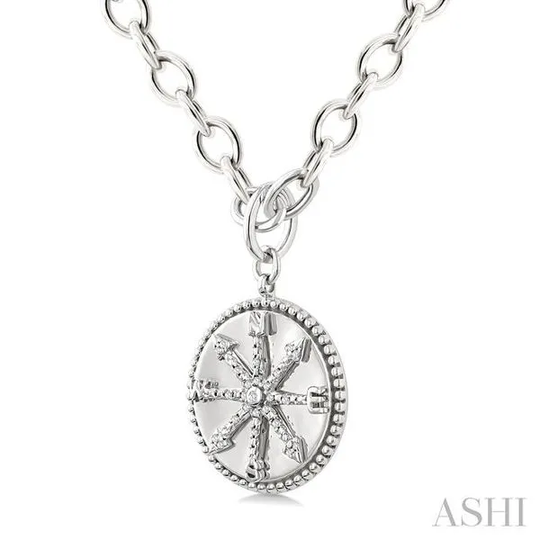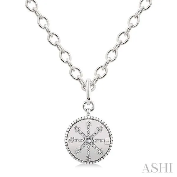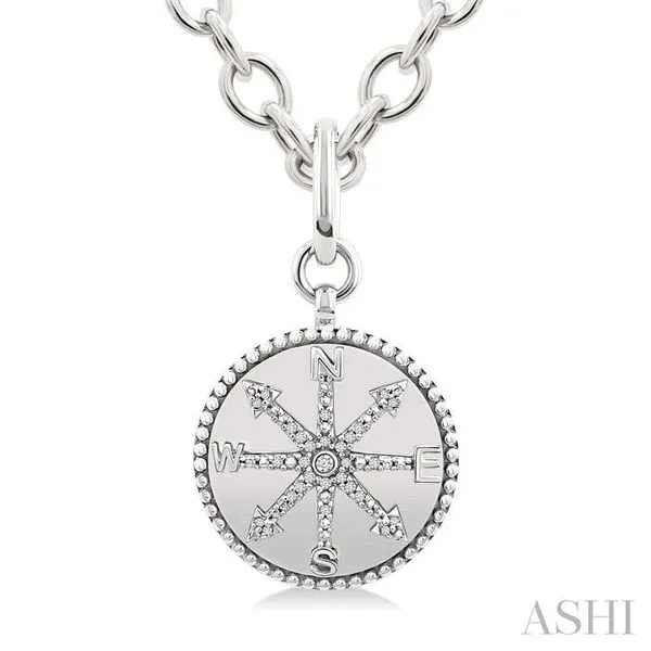 1/10 Ctw Compass medallion Round Cut Diamond Pendant With Chain in Sterling Silver Image 2 Adler's Diamonds Saint Louis, MO