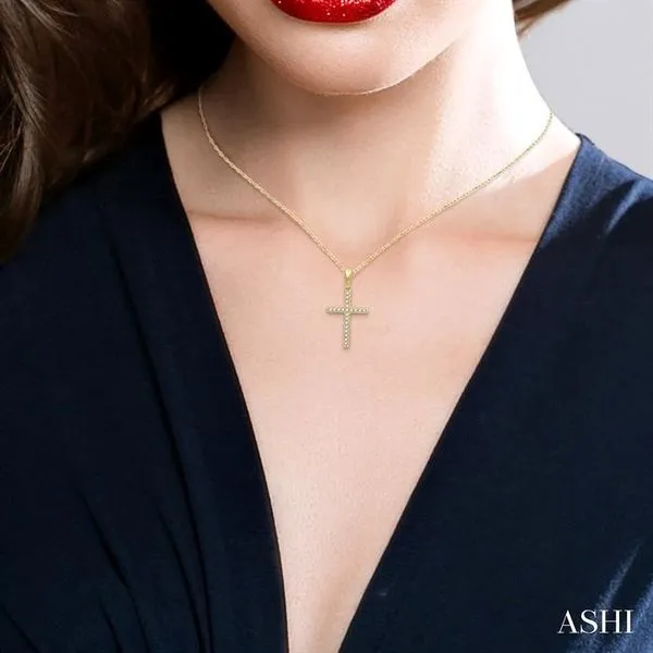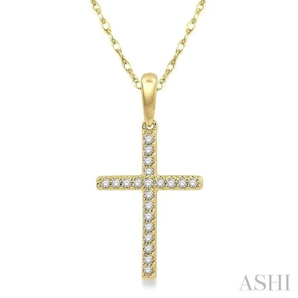 1/10 Ctw Cross Charm Petite Round Cut Diamond Fashion Pendant in 10K Yellow Gold with chain Image 3 Adler's Diamonds Saint Louis, MO