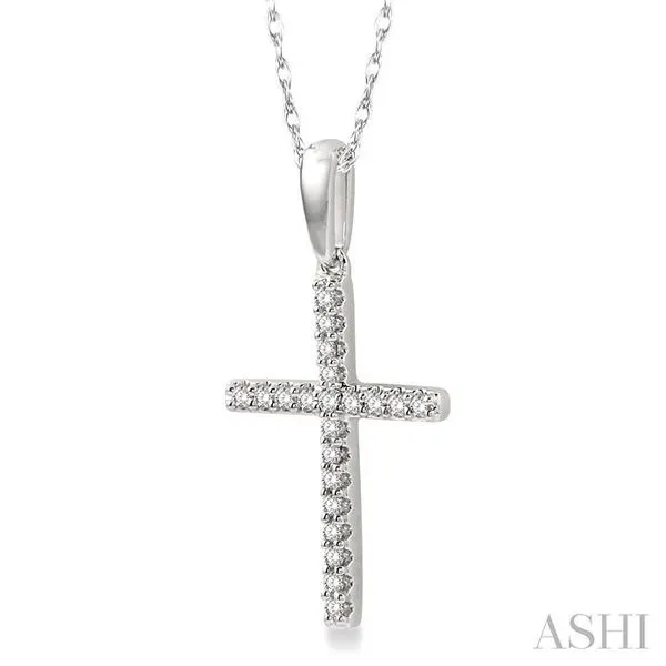 1/10 Ctw Cross Charm Round Cut Diamond Fashion Petite Pendant in 10K White Gold with chain Image 2 Adler's Diamonds Saint Louis, MO