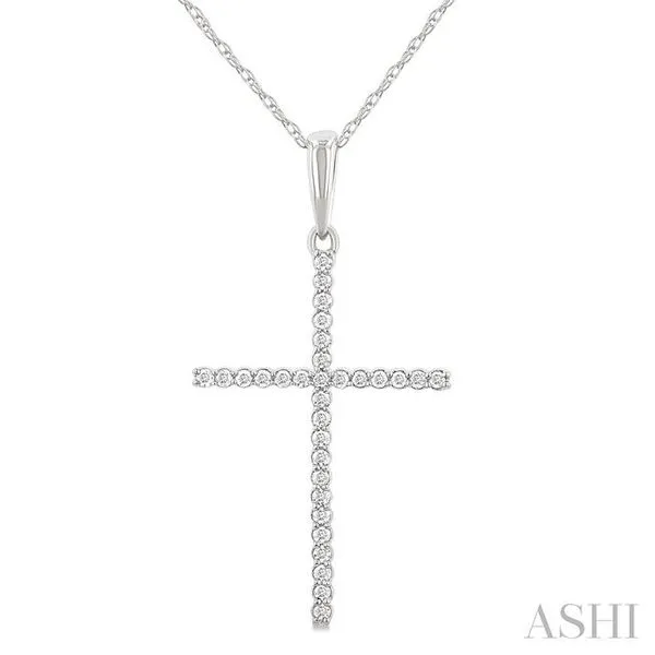 3. 1/10 Ctw Cross Round Cut Diamond Fashion Pendant With Chain in 10K Yellow Gold