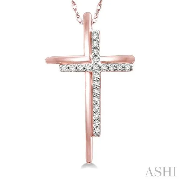 1/10 Ctw Double Cross Round Cut Diamond Pendant With Link Chain in 10K Rose Gold Image 4 Adler's Diamonds Saint Louis, MO
