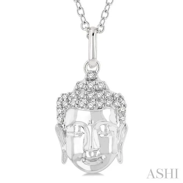 1/10 Ctw Head of Buddha Petite Round Cut Diamond Fashion Pendant With Chain in 10K White Gold Image 4 Adler's Diamonds Saint Louis, MO