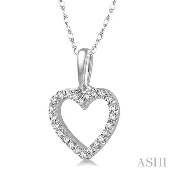 1/10 Ctw Hollow Cut Heart Charm Round Cut Diamond Petite Pendant in 10K White Gold with chain Image 4 Adler's Diamonds Saint Louis, MO