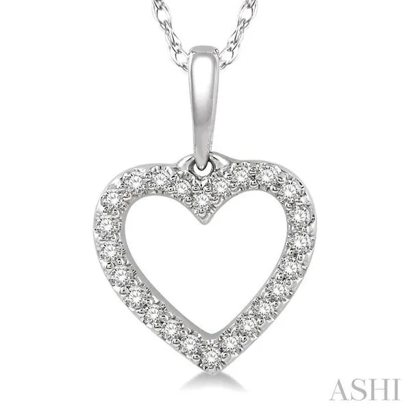 1/10 Ctw Hollow Cut Heart Charm Round Cut Diamond Petite Pendant in 10K White Gold with chain Adler's Diamonds Saint Louis, MO