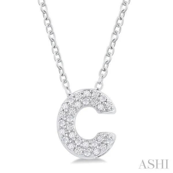 1/10 Ctw Initial 'C' Round Cut Diamond Fashion Pendant With Chain in 10K White Gold Image 3 Adler's Diamonds Saint Louis, MO
