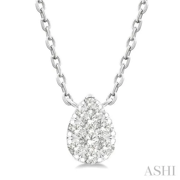 1/10 Ctw Lovebright Petite Pear Shape Round Cut Diamond Fashion Pendant With Chain in 10K White Gold Adler's Diamonds Saint Louis, MO