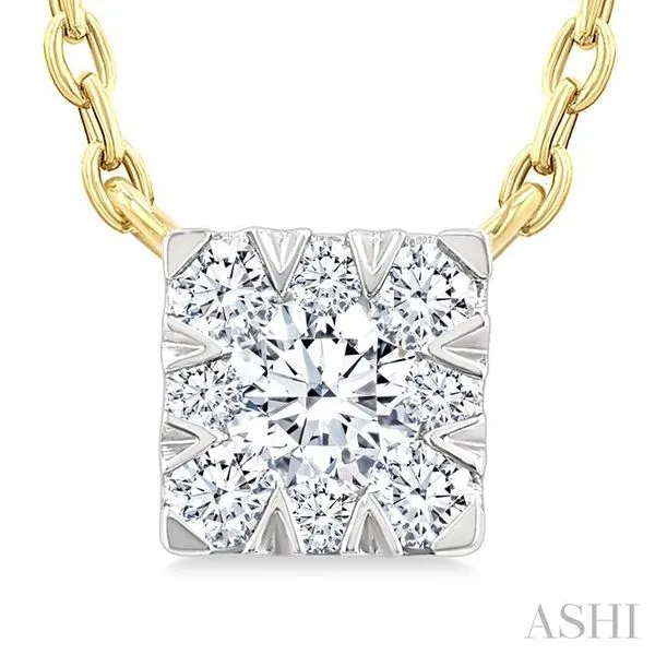 1/10 Ctw Lovebright Petite Square Shape Round Cut Diamond Fashion Pendant With Chain in 10K Yellow Gold Adler's Diamonds Saint Louis, MO