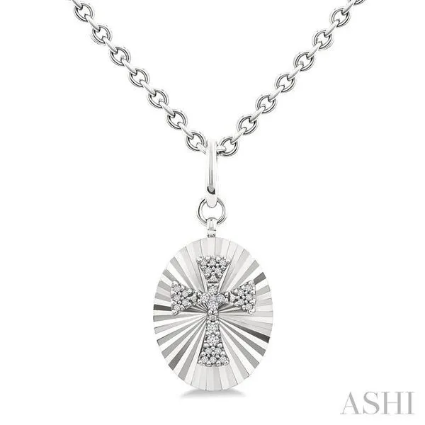 1/10 Ctw Oval Fluted Medallion Round Cut Diamond Cross Pendant With Chain in Sterling Silver Image 3 Adler's Diamonds Saint Louis, MO