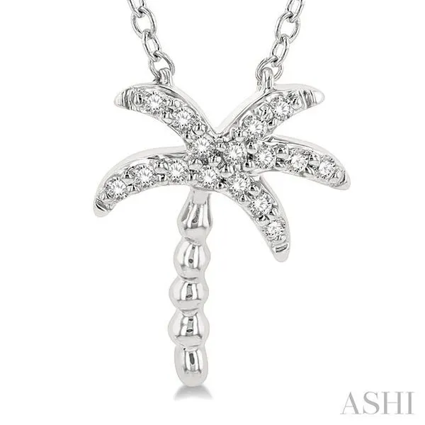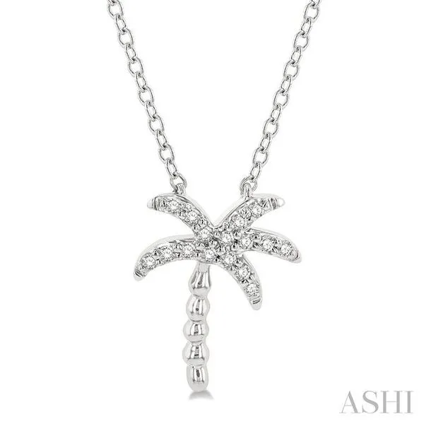 1/10 Ctw Palm Tree Round Cut Diamond Petite Fashion Pendant With Chain in 10K White Gold Image 2 Adler's Diamonds Saint Louis, MO