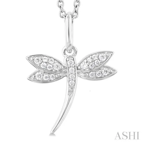 1/10 Ctw Petite Dragonfly Round Cut Diamond Fashion Pendant With Chain in 10K White Gold Image 2 Adler's Diamonds Saint Louis, MO