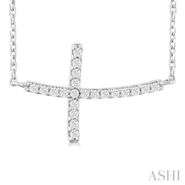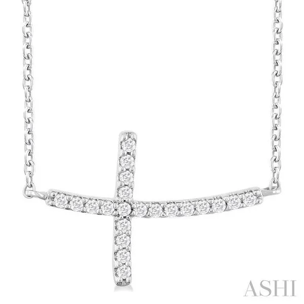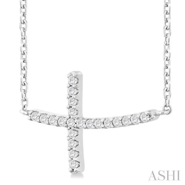 1/10 Ctw Petite Sideways Cross Round Cut Diamond Fashion Pendant With Chain in 10K White Gold Image 3 Adler's Diamonds Saint Louis, MO