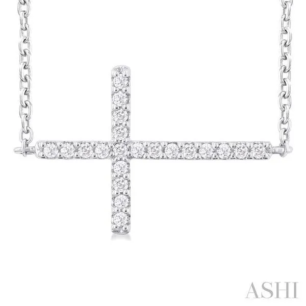1/10 Ctw Petite Sideways Cross Round Cut Diamond Fashion Pendant With Chain in 10K White Gold Image 4 Adler's Diamonds Saint Louis, MO