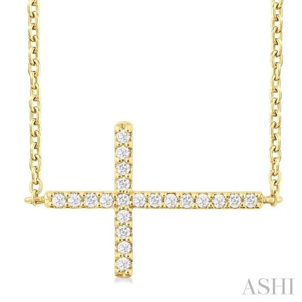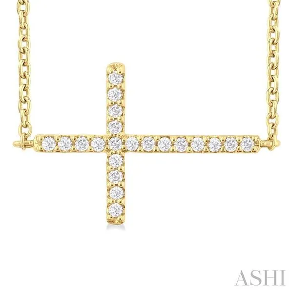 1/10 Ctw Petite Sideways Cross Round Cut Diamond Fashion Pendant With Chain in 10K Yellow Gold Image 3 Adler's Diamonds Saint Louis, MO