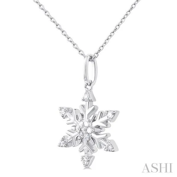 1/10 Ctw Petite Snowflake Round Cut Diamond Fashion Pendant With Chain in 10K White Gold Image 3 Adler's Diamonds Saint Louis, MO