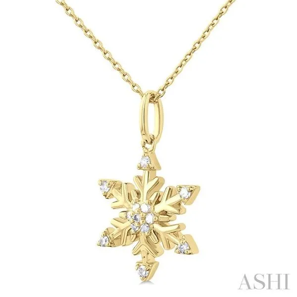 1/10 Ctw Petite Snowflake Round Cut Diamond Fashion Pendant With Chain in 10K Yellow Gold Image 3 Adler's Diamonds Saint Louis, MO