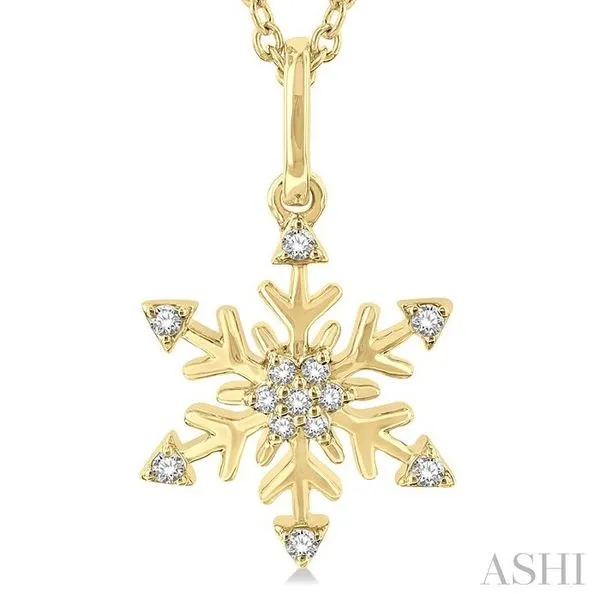 1/10 Ctw Petite Snowflake Round Cut Diamond Fashion Pendant With Chain in 10K Yellow Gold Image 2 Adler's Diamonds Saint Louis, MO