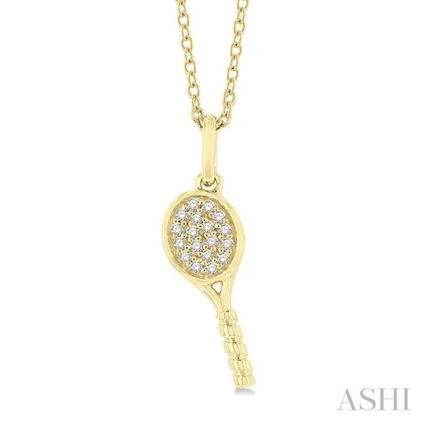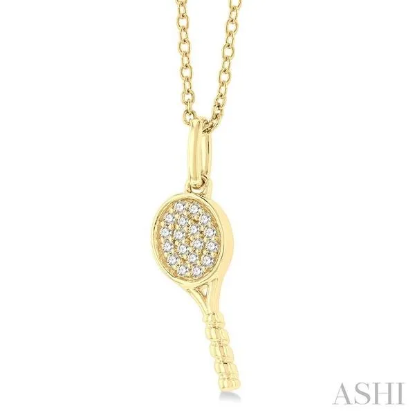 1/10 Ctw Petite Tennis Racket Round Cut Diamond Fashion Pendant With Chain in 10K Yellow Gold Image 2 Adler's Diamonds Saint Louis, MO
