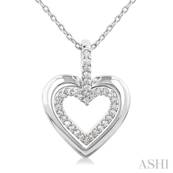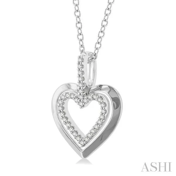 1/10 Ctw Petite Twin Heart Round Cut Diamond Fashion Pendant With Chain in 10K White Gold Image 3 Adler's Diamonds Saint Louis, MO
