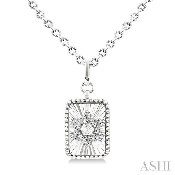 1/10 Ctw Rectangle Fluted Medallion Round Cut Diamond Star of David Pendant With Chain in Sterling Silver Image 3 Adler's Diamonds Saint Louis, MO