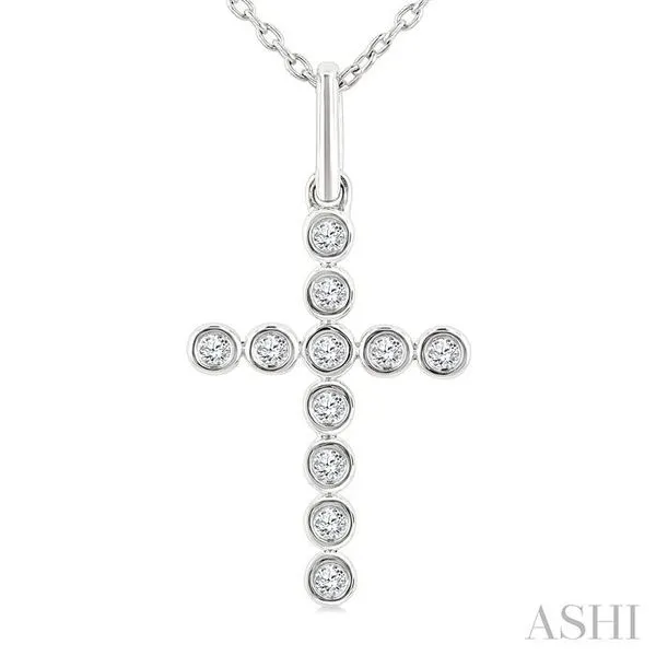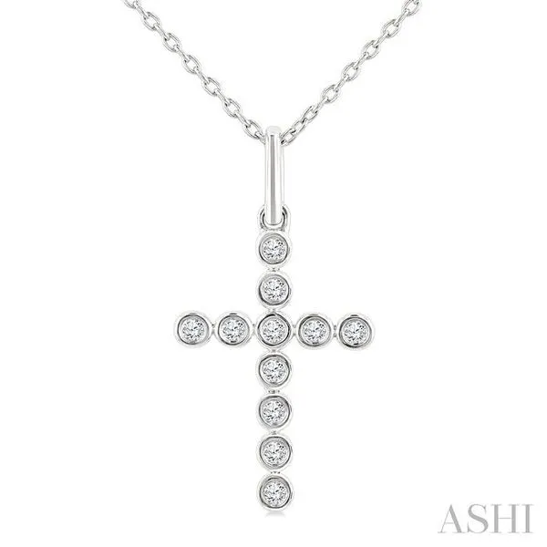1/10 Ctw Round Cut Diamond Bezel Set Cross Petite Pendant With Chain in 10K White Gold Image 2 Adler's Diamonds Saint Louis, MO