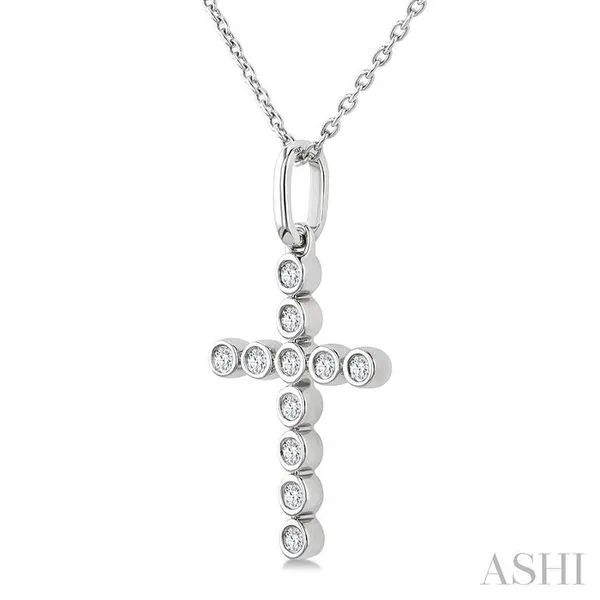 1/10 Ctw Round Cut Diamond Bezel Set Cross Petite Pendant With Chain in 10K White Gold Image 3 Adler's Diamonds Saint Louis, MO