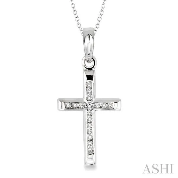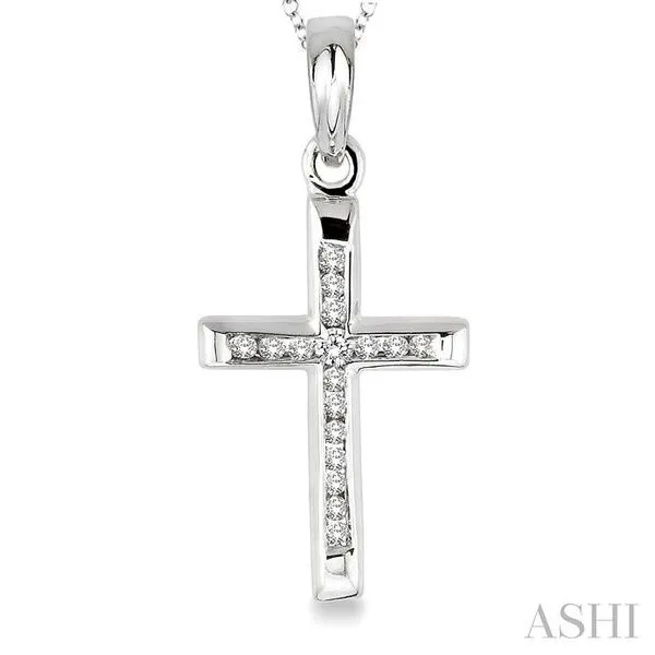 1/10 Ctw Round Cut Diamond Channel Cross Pendant in Sterling Silver with Chain Image 2 Adler's Diamonds Saint Louis, MO