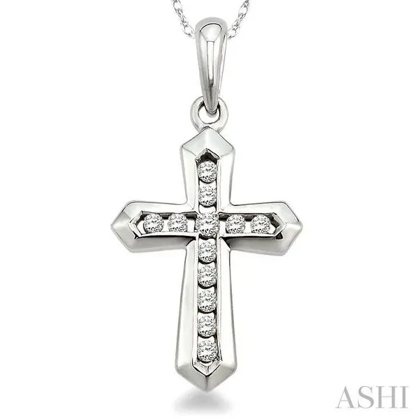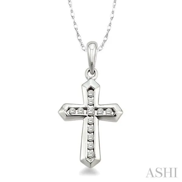 1/10 Ctw Round Cut Diamond Cross Pendant in 10K White Gold with Chain Image 2 Adler's Diamonds Saint Louis, MO