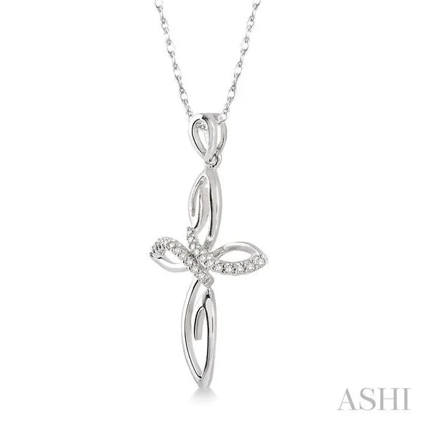 1/10 Ctw Round Cut Diamond Cross Pendant in 14K White Gold With Chain Image 3 Adler's Diamonds Saint Louis, MO