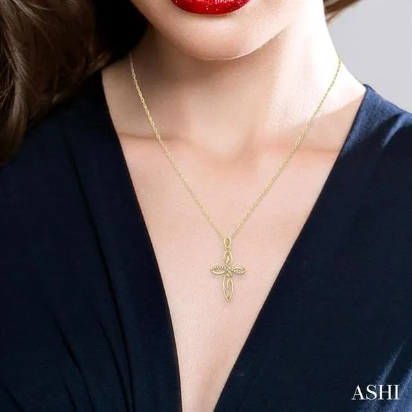1/10 Ctw Round Cut Diamond Cross Pendant in 14K Yellow Gold With Chain