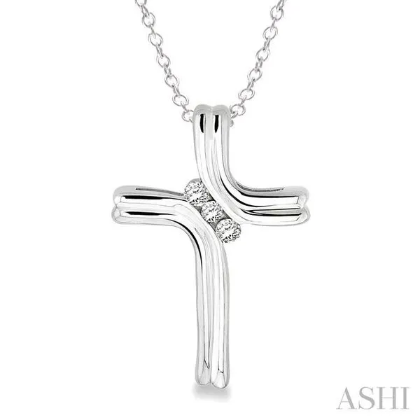1/10 Ctw Round Cut Diamond Cross Pendant in Sterling Silver with Chain Image 3 Adler's Diamonds Saint Louis, MO