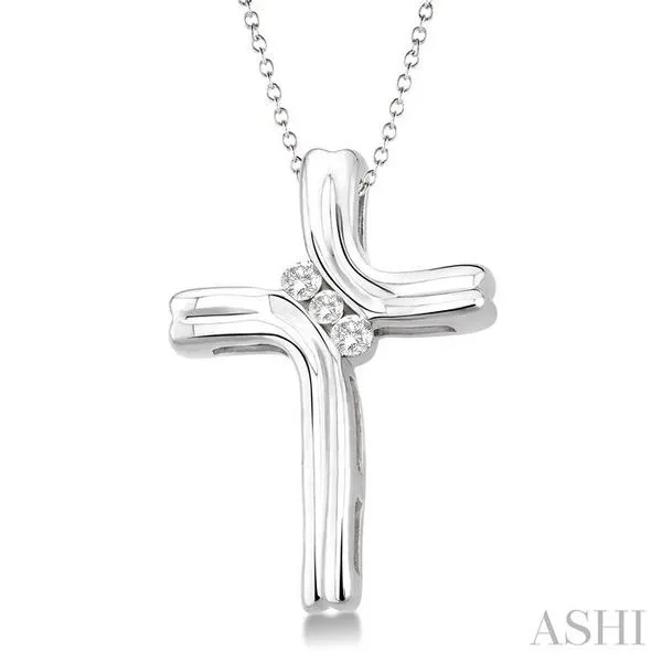 1/10 Ctw Round Cut Diamond Cross Pendant in Sterling Silver with Chain Image 2 Adler's Diamonds Saint Louis, MO