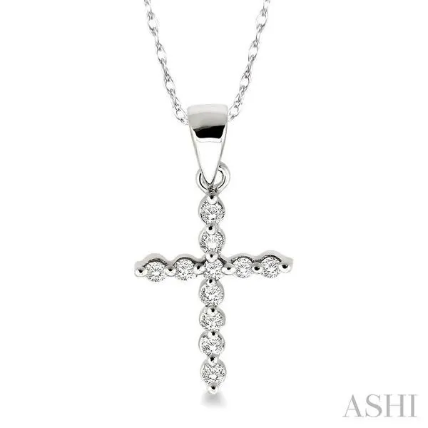 1/10 Ctw Round Cut Diamond Cross Petite Pendant in 14K White Gold with Chain Image 4 Adler's Diamonds Saint Louis, MO