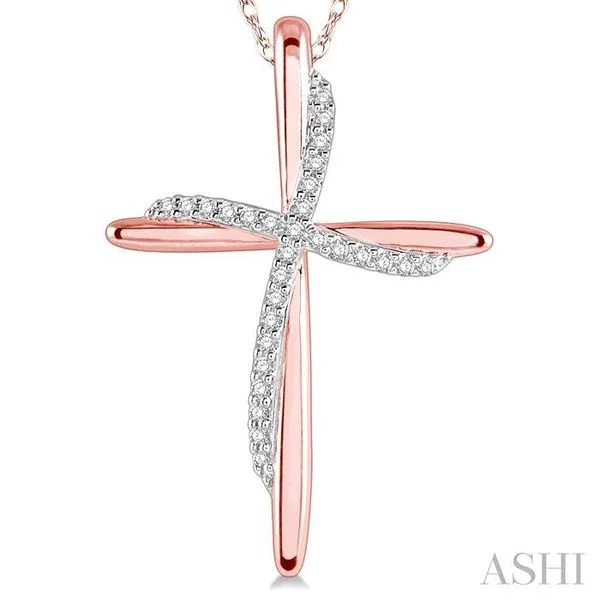 1/10 Ctw Round Cut Diamond Draped Cross Charm Pendant With Chain in 10K Rose Gold Image 2 Adler's Diamonds Saint Louis, MO