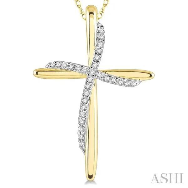 1/10 Ctw Round Cut Diamond Draped Cross Charm Pendant With Chain in 10K Yellow Gold Image 2 Adler's Diamonds Saint Louis, MO