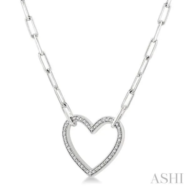1/10 Ctw Round Cut Diamond Heart Pendant With Paperclip Chain in Sterling Silver Image 2 Adler's Diamonds Saint Louis, MO