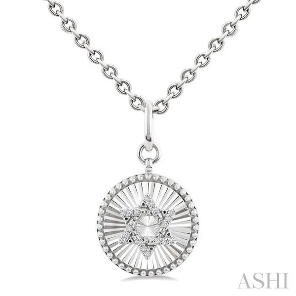 1/10 Ctw Round Fluted Medallion Round Cut Diamond Star of David Pendant With Chain in Sterling Silver Image 3 Adler's Diamonds Saint Louis, MO