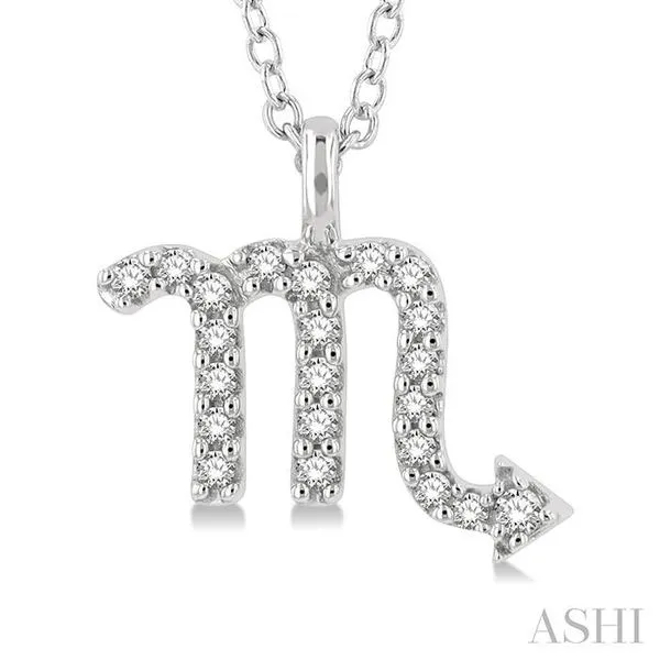 1/10 Ctw Scorpio Round Cut Diamond Zodiac Pendant With Chain in 14K White Gold Image 2 Adler's Diamonds Saint Louis, MO