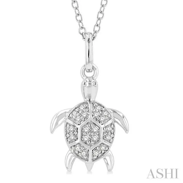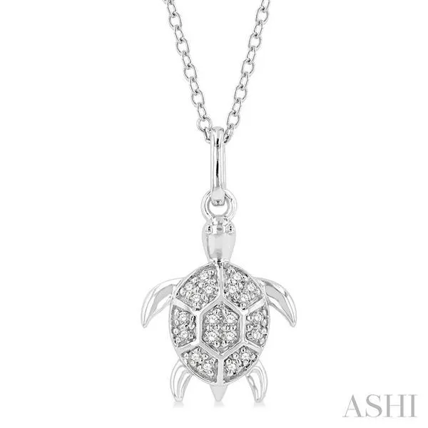 1/10 Ctw Sea Turtle Petite Round Cut Diamond Fashion Pendant With Chain in 10K White Gold Image 3 Adler's Diamonds Saint Louis, MO