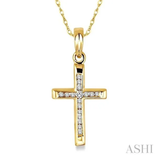 1/10 Ctw Single Cut Diamond Cross Pendant in 10K Yellow Gold with Chain Image 2 Adler's Diamonds Saint Louis, MO