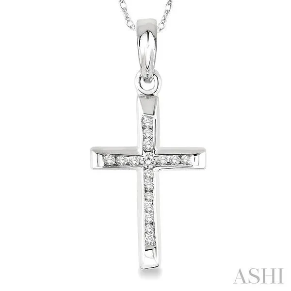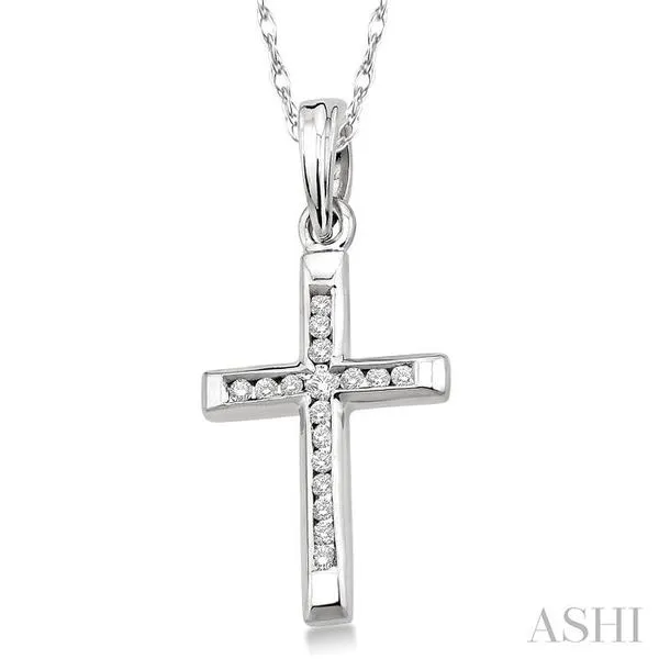 1/10 Ctw Single Cut Diamond Cross Pendant in 14K White Gold with Chain Adler's Diamonds Saint Louis, MO